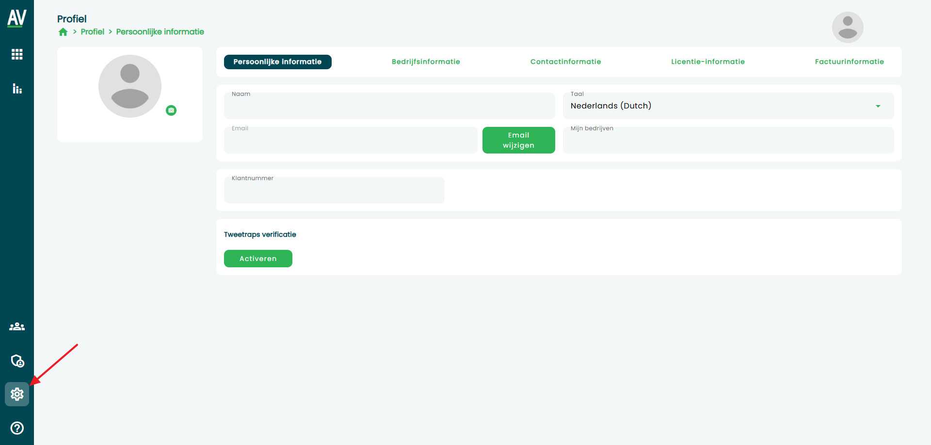 Hier vind je taalinstellingen, klantnummer en gekoppelde bedrijven. Daarnaast kan je je e-mailadres wijzigen en tweetraps verificatie activeren.