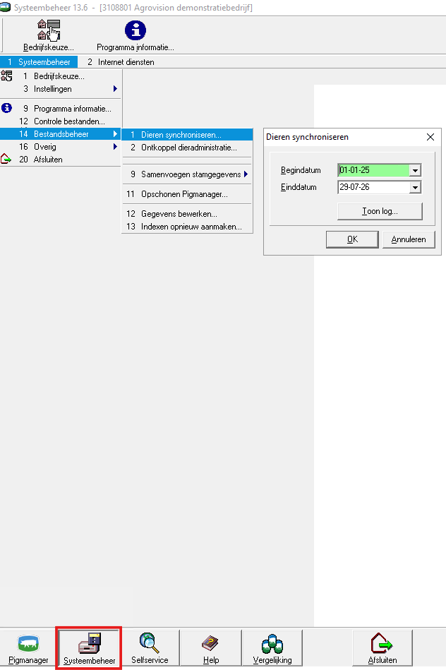 U kiest 1. Systeembeheer 14. Bestandsbeheer 1. Dieren synchroniseren en Ok